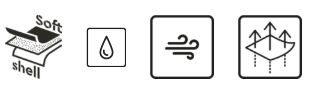Tecido tripla capa; Fecho central com fecho de correr invertido em cor contraste; Manga raglán com costura decorativa meia manga; Carcela interna virada na parte superior, cobrindo o fecho de corre; Fechos e puxadores em preto; Punhos ajustáveis com velcro; Pinças nos cotovelos; Cinco bolsos: 3 bolsos de vivo com fecho de correr e 2 bolsos de chapa interiores